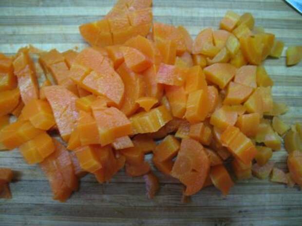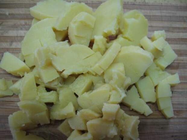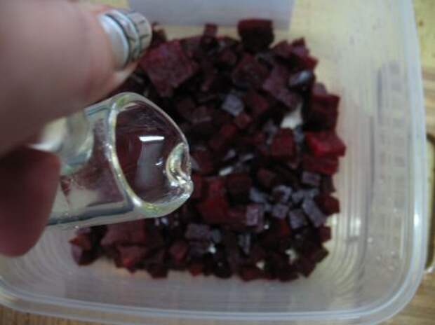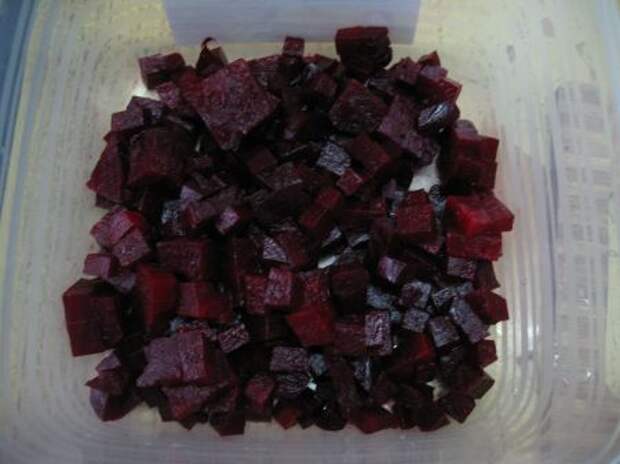 Итак, свеклу нарезали кубиками, и заправили растительным маслом