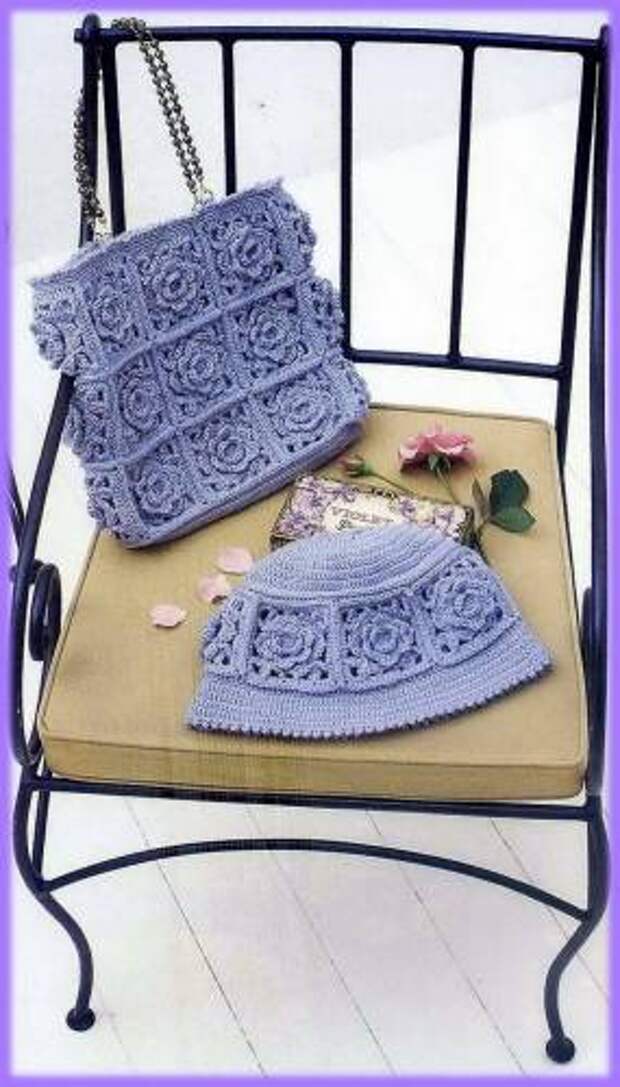 Голубая сумка и шляпка из квадратных мотивов