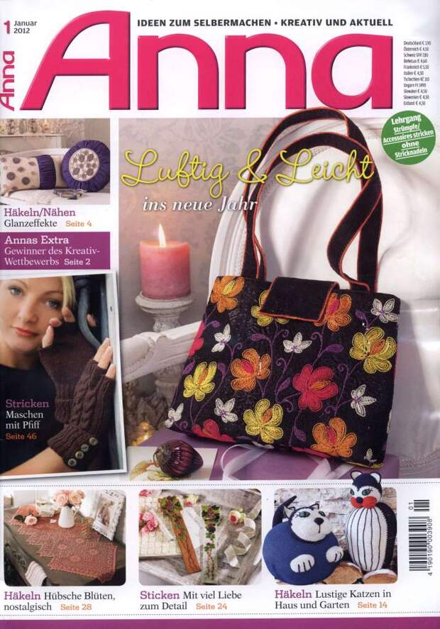 Журнал Anna о различных видах рукоделия. В этом журнале представлены: вышивка, вязание, создание декоративным предметов интерьера, игрушки, подушки, чехлы для телефона, одежда, сумки, салфетки и прочие приятные мелочи
