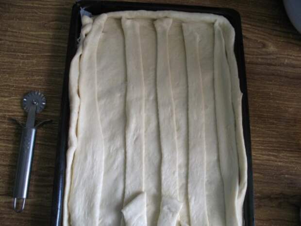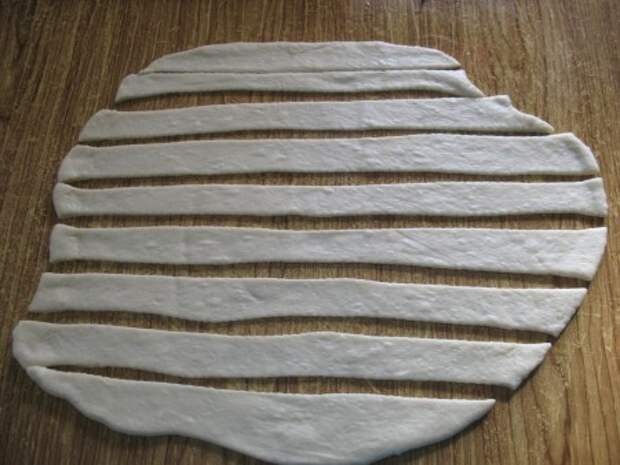 Выкладываем часть полосок на противень поверх теста