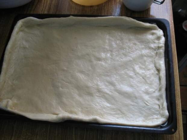 Одну часть раскатываем и кладем на смазанный маслом противень