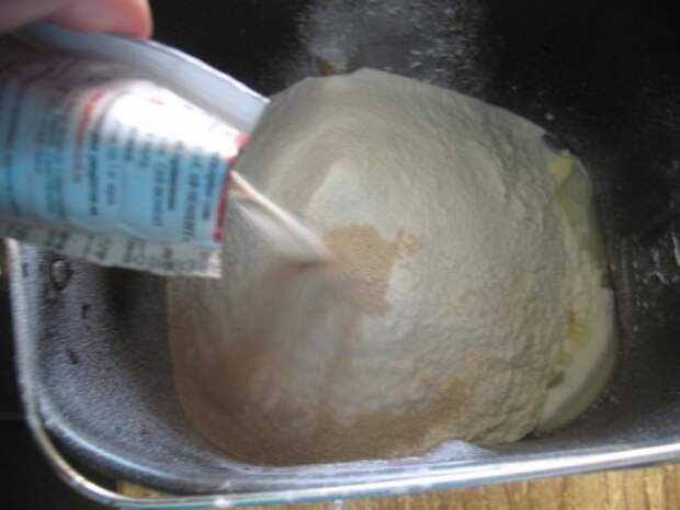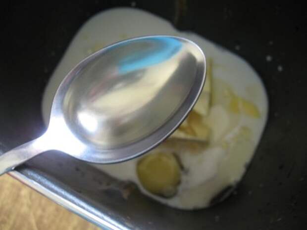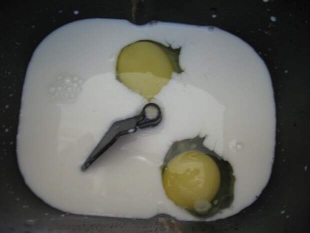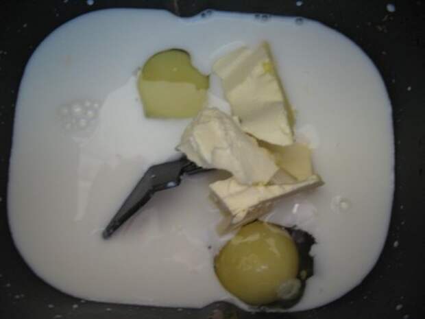 Берем теплое молоко, вливаем в форму для хлебопечки