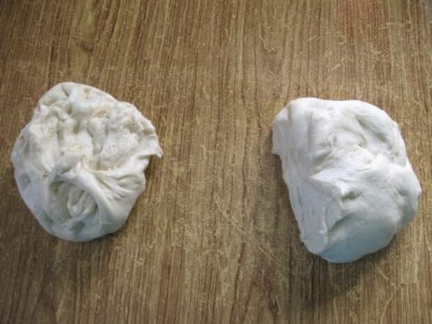 Берем готовое тесто, делим его на две равные части