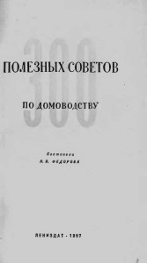 В книге предложены 300 полезных советов по ведению домашнего хозяйства, таких как: уборка в доме, уход за мебелью, борьба с грызунами и насекомыми. А также уход за кухонной утварью и одеждой, личная гигиена, советы по борьбе с сорняками и т.д.