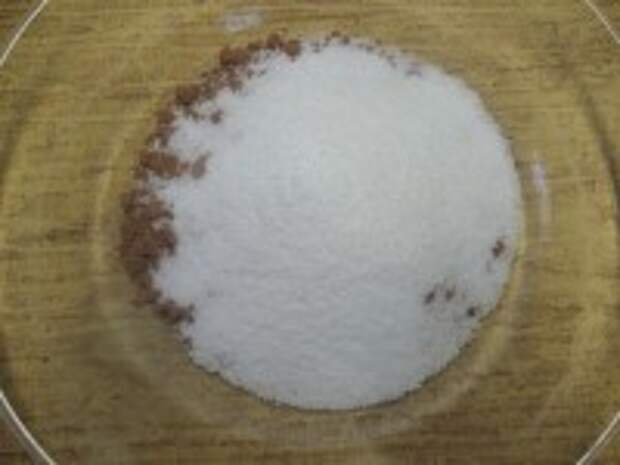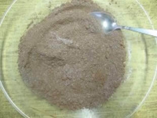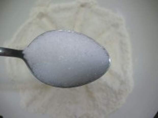 Смешиваем муку с сахаром, добавляем погашенную соду