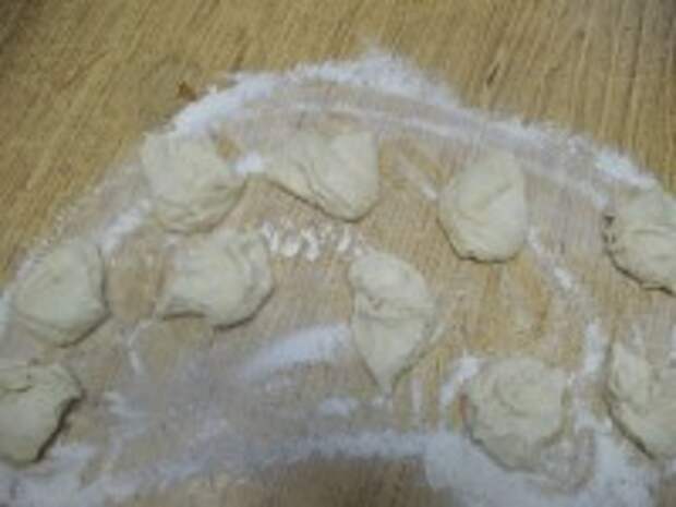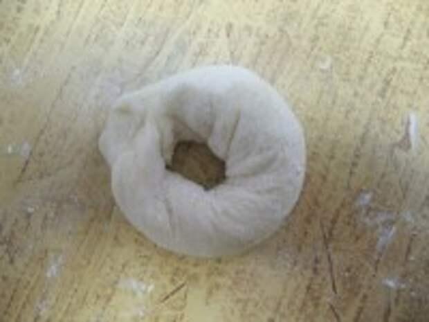 Тесто делим на небольшие кусочки и лепим вот такие бублики